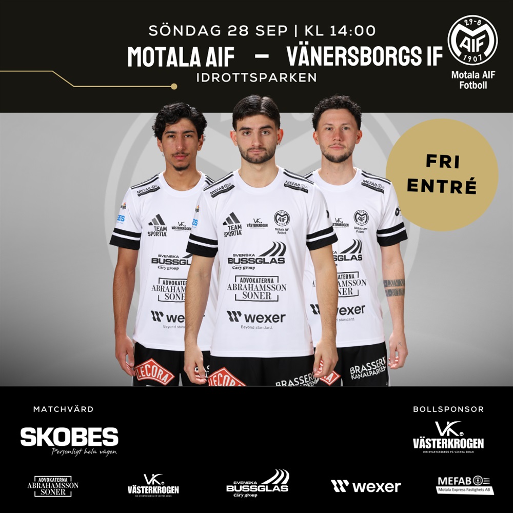 Nu är det dags att ladda upp för match igen då vi tar emot Vänersborgs IF hemma på Idrottsparken på söndag kl 14:00.